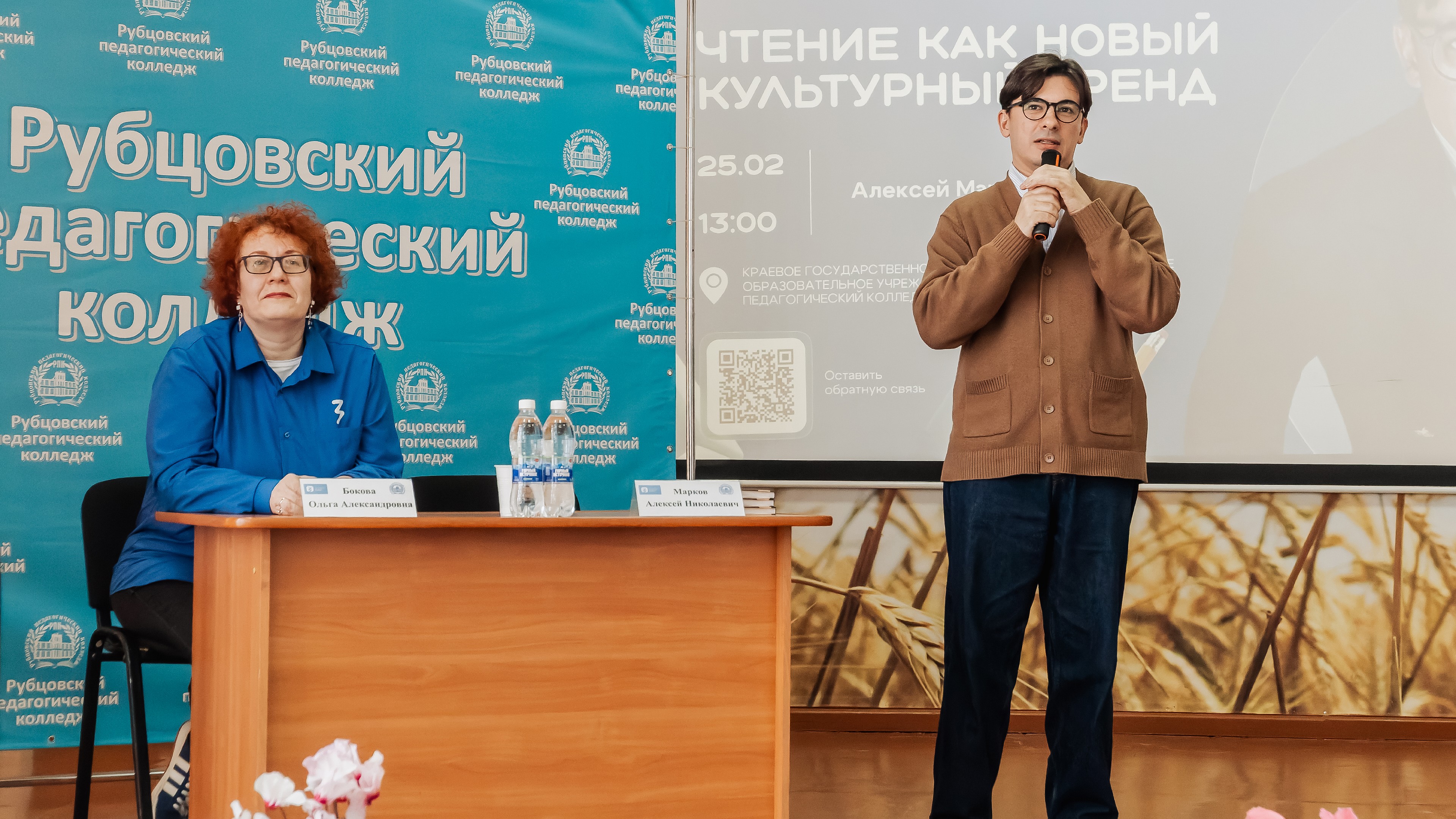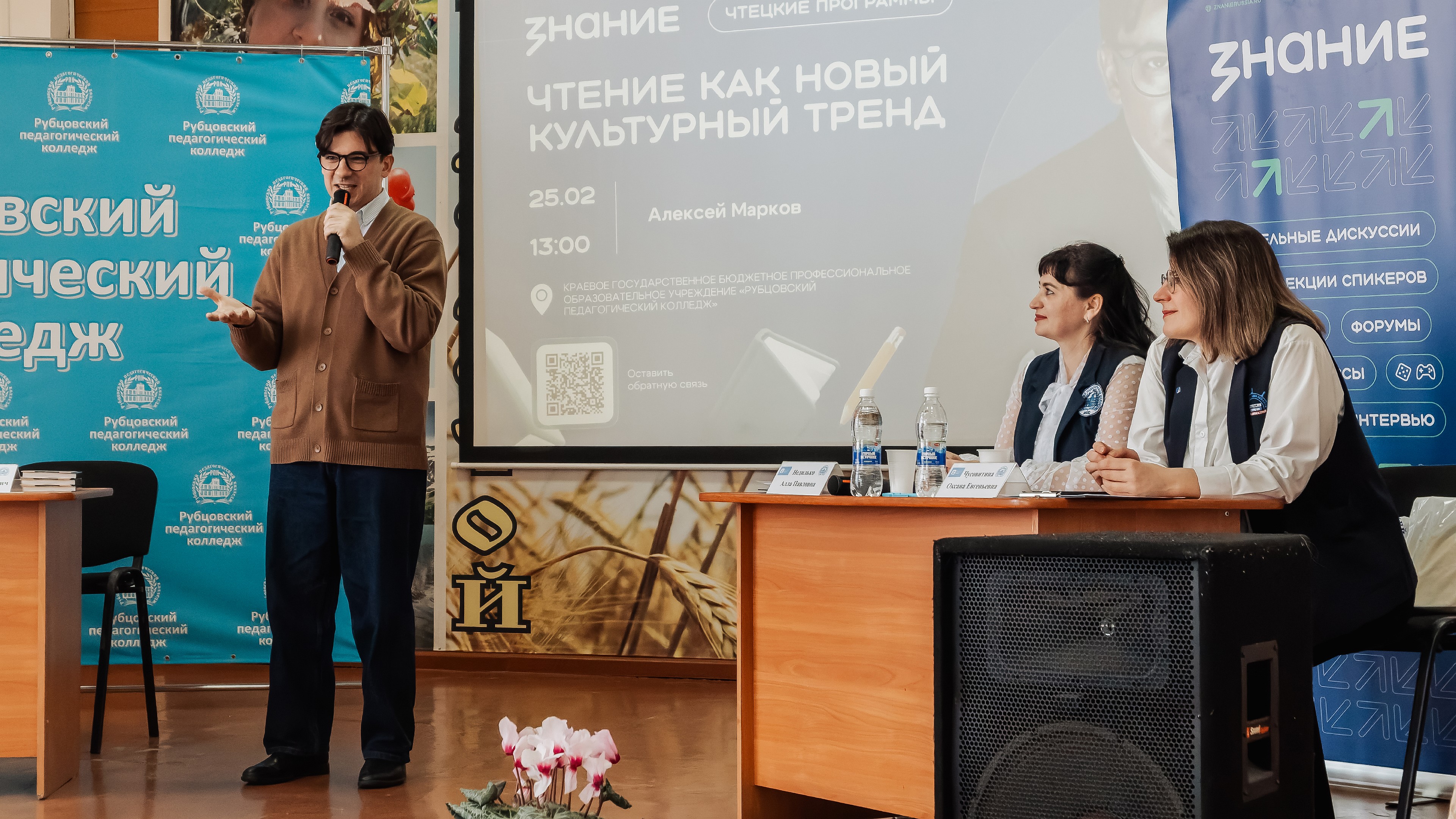 В Рубцовском педагогическом колледже прошла встреча с российским актером театра и кино Алексеем Марковым. Мероприятие состоялось в рамках масштабного просветительского проекта Российского общества «Знание» – «Чтецкие программы», направленного на популяризацию чтения и культуры среди молодежи.