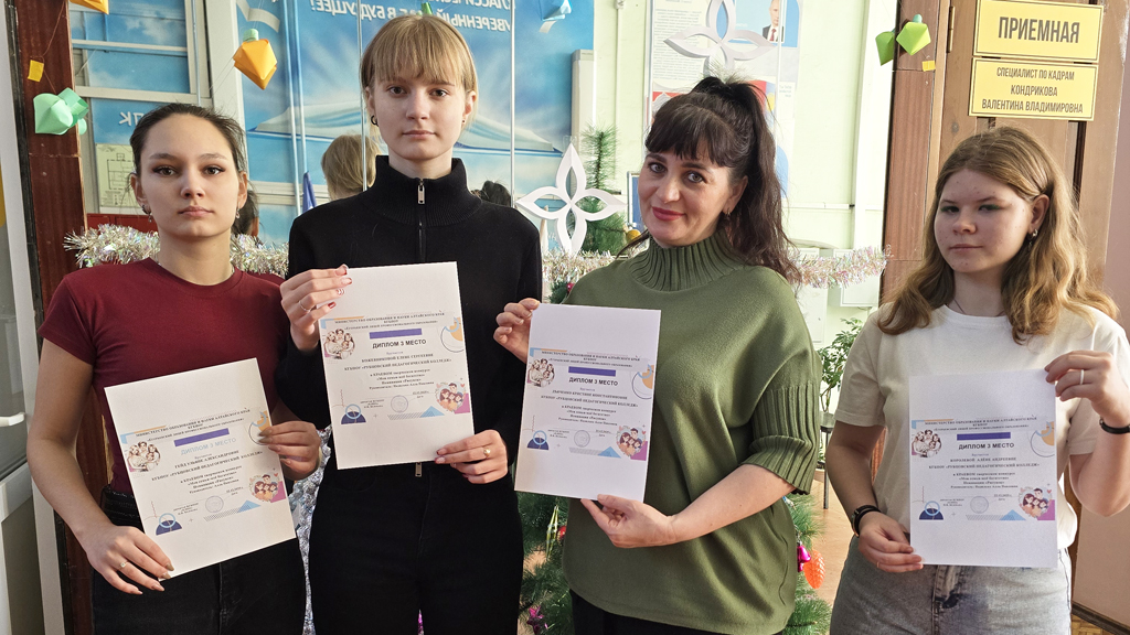 В копилке достижений Рубцовского педагогического колледжа — новые награды. Студентки специальности «Преподавание в начальных классах» Королева Алёна, Кожевникова Елена, Рексиус Алина и