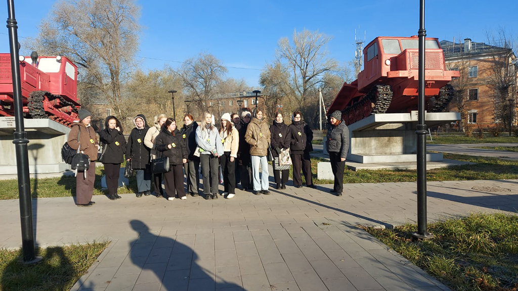 25 октября 2025 г. студенты 4 курса специальности «Преподавание в начальных классах» группы НК 221 приняли участие в пешеходной экскурсии по городу Рубцовску. Научный сотрудник Городского Краеведческого музея Кагикина Марина Анатольевна провела для девушек очень интересную и познавательную экскурсию. Экскурсия проводилась с использованием современного оборудования: каждой студентке была выдана удобная гарнитура и приемник, которые позволили очень четко слышать все, что рассказывала экскурсовод, не отвлекаясь на городские шумы. Экскурсия началась во дворе Рубцовского педагогического колледжа. Марина Анатольевна привела малоизвестные и очень интересные факты из истории нашего колледжа, опираясь на архивные материалы Городского краеведческого музея, воспоминания первых выпускников, Юматовой А.В. Студенты узнали, что колледж несколько раз менял специальности, по которым готовили будущих учителей: учителя рисования, учителя музыки, учителя русского языка, социальные педагоги, учителя физической культуры. Колледж постоянно развивается, стремится откликнуться на в вызовы времени.