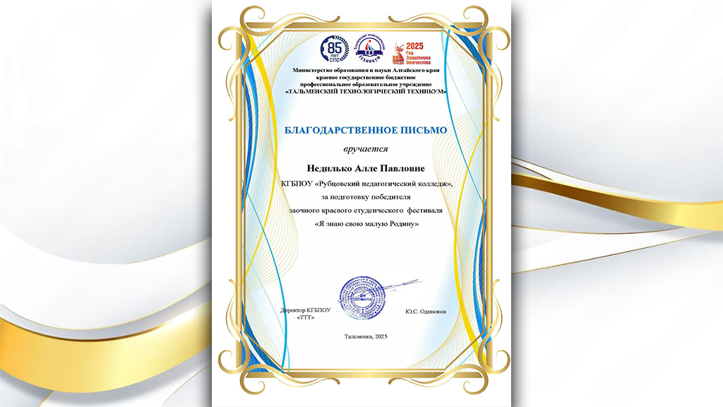 Участие и победы в таких значимых краевых проектах подчеркивают не только высокий уровень знаний и исследовательских навыков студентов Рубцовского педагогического колледжа, но и эффективную работу педагогов, которые прививают будущим специалистам уважение к малой родине.