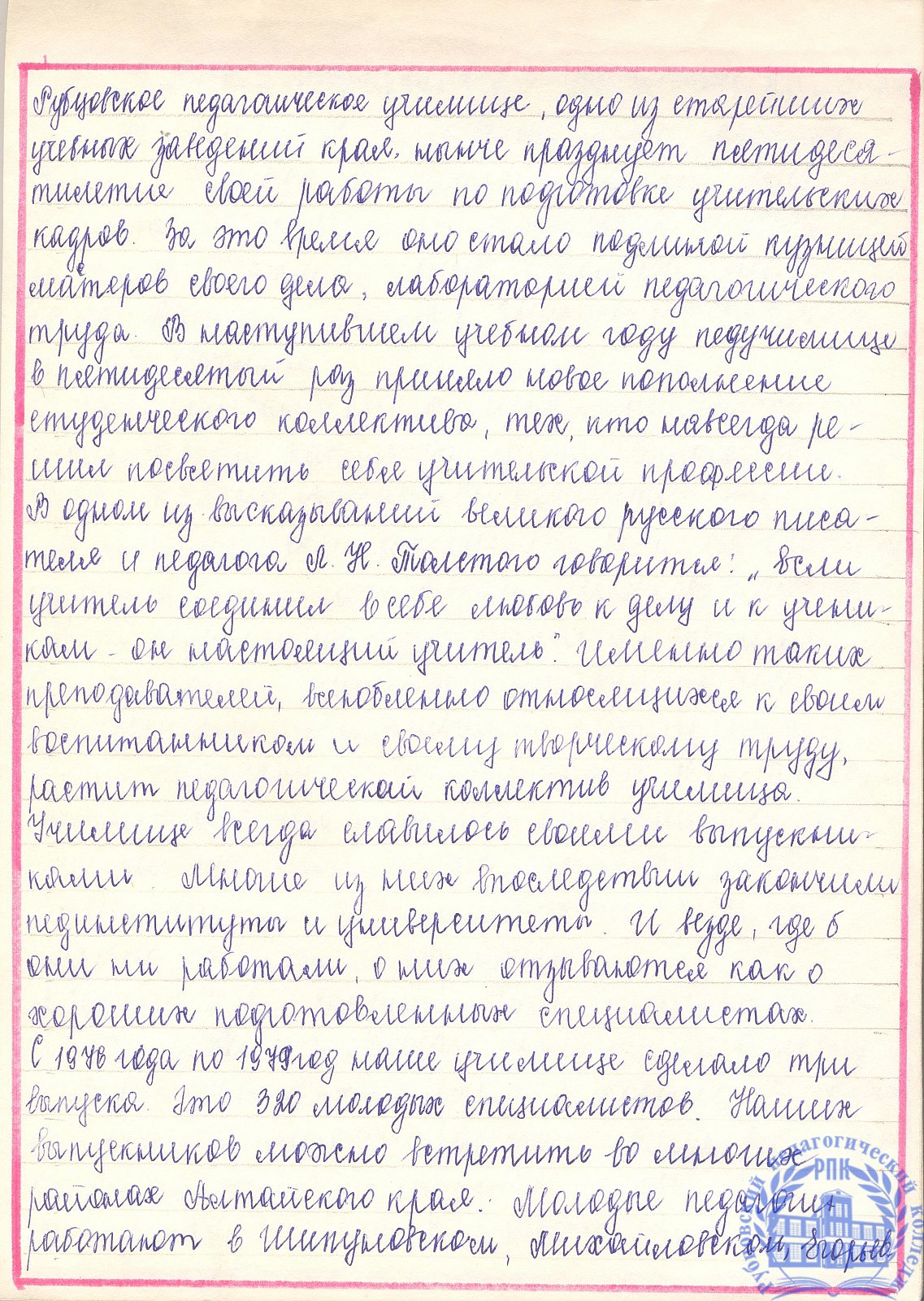 Письма выпускников XX в.в.
