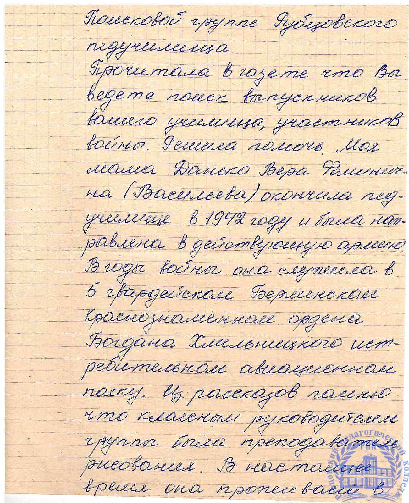 Письма выпускников XX в.в.
