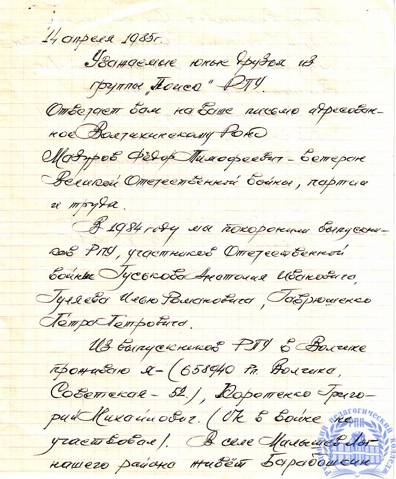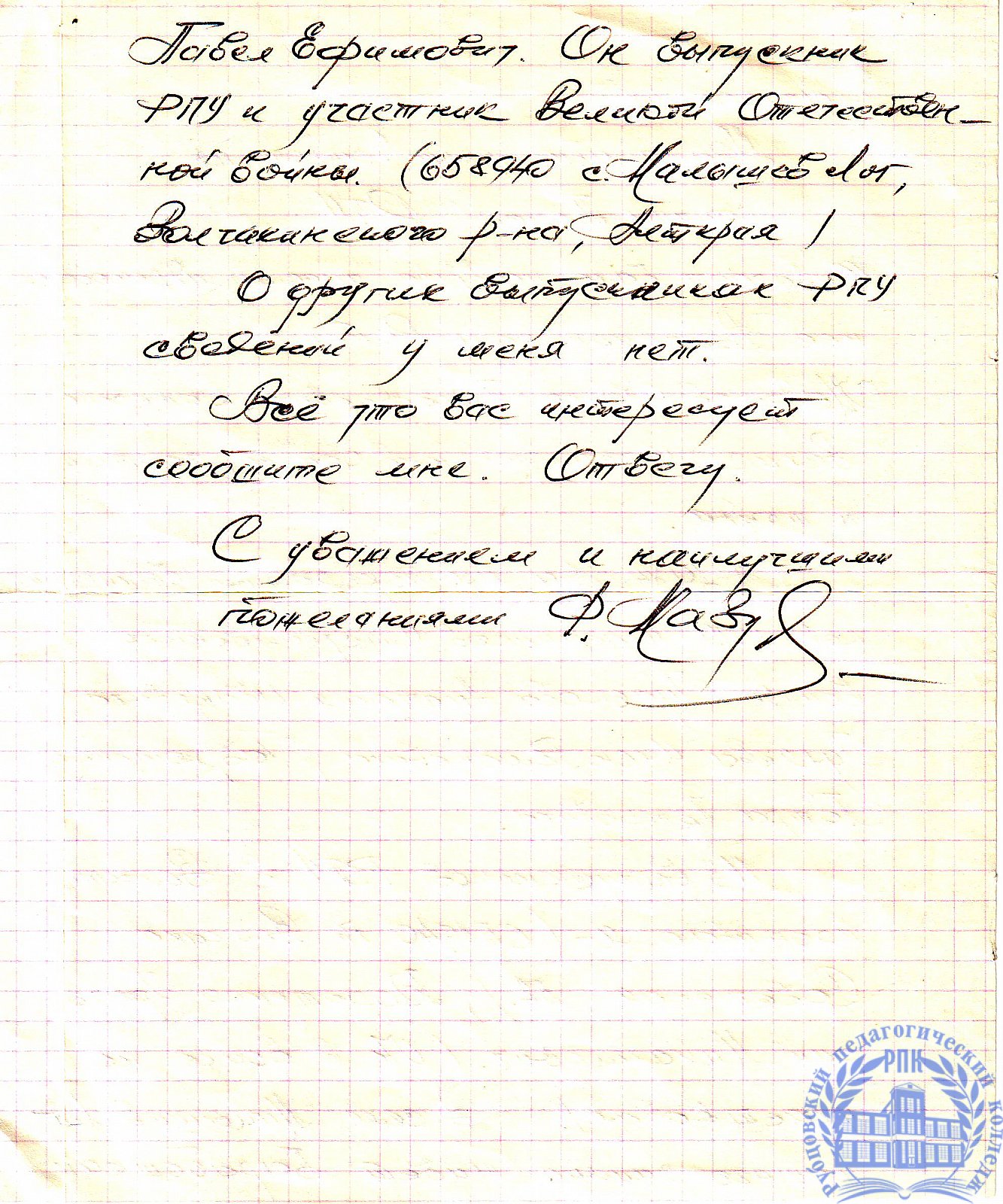 Письма выпускников XX в.в.