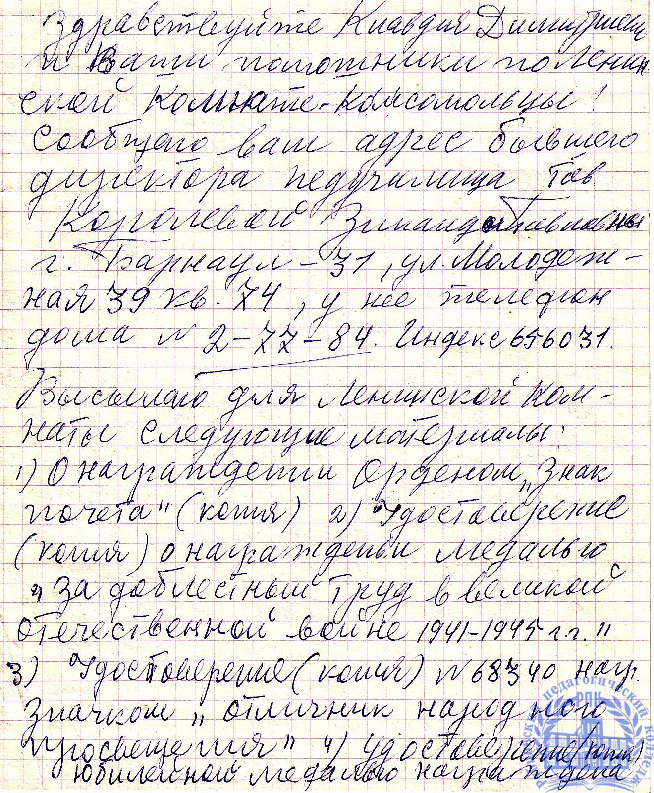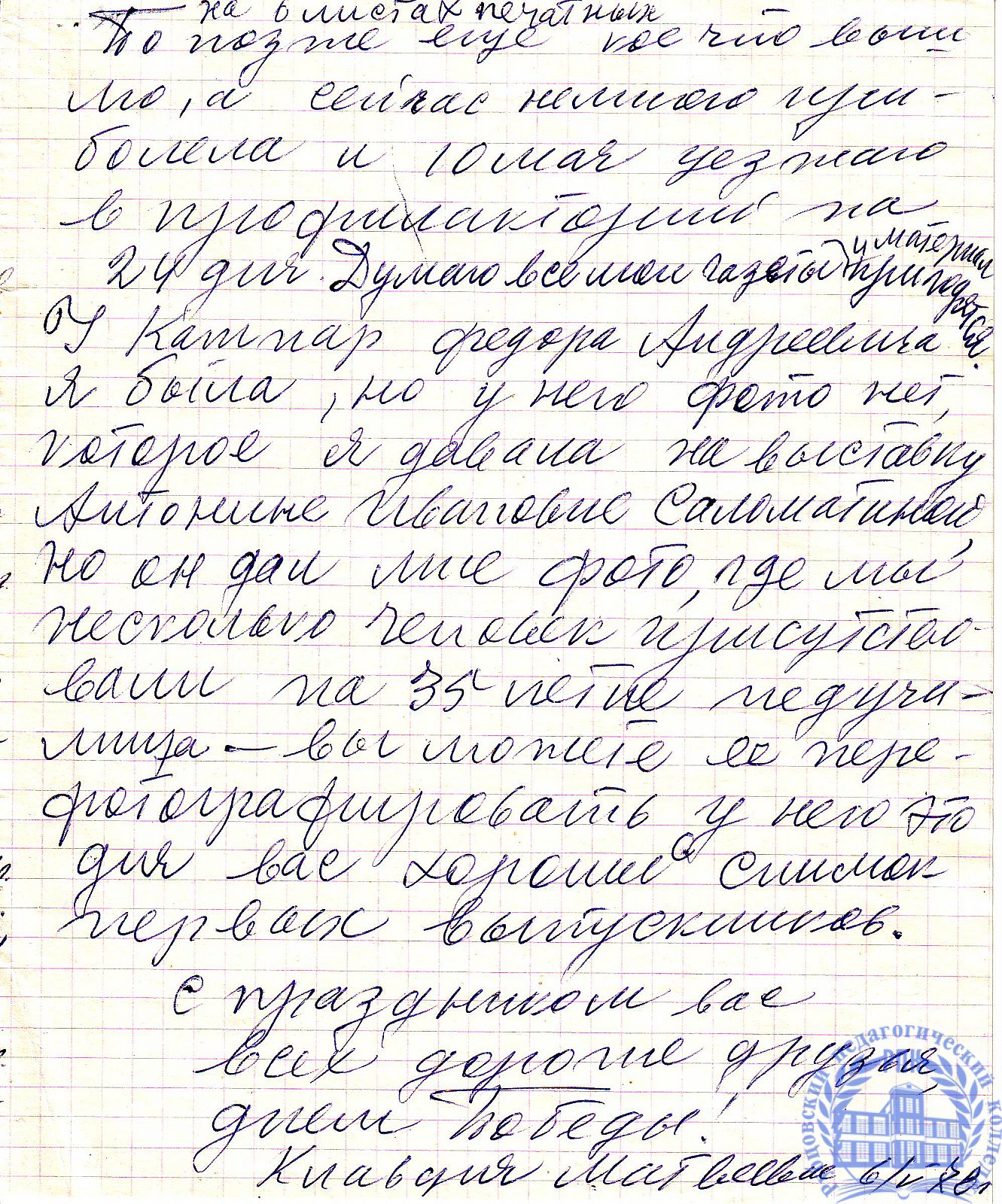 Письма выпускников XX в.в.