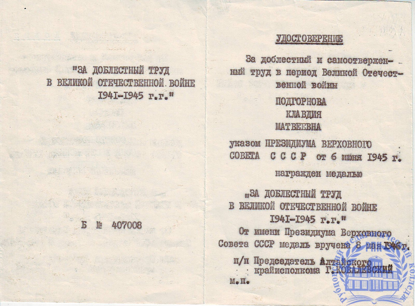 Подгорнова Клавдия Матвеевна