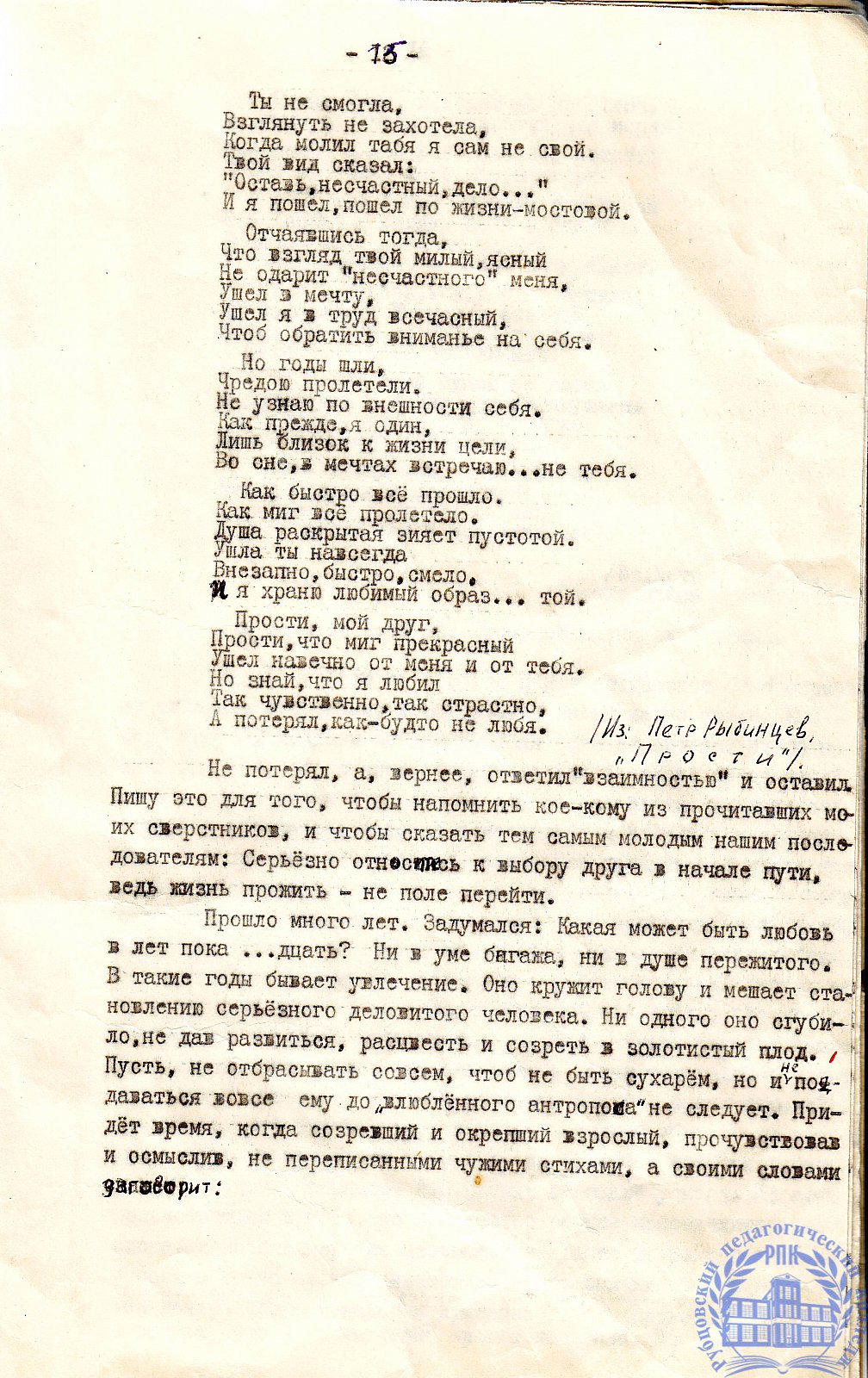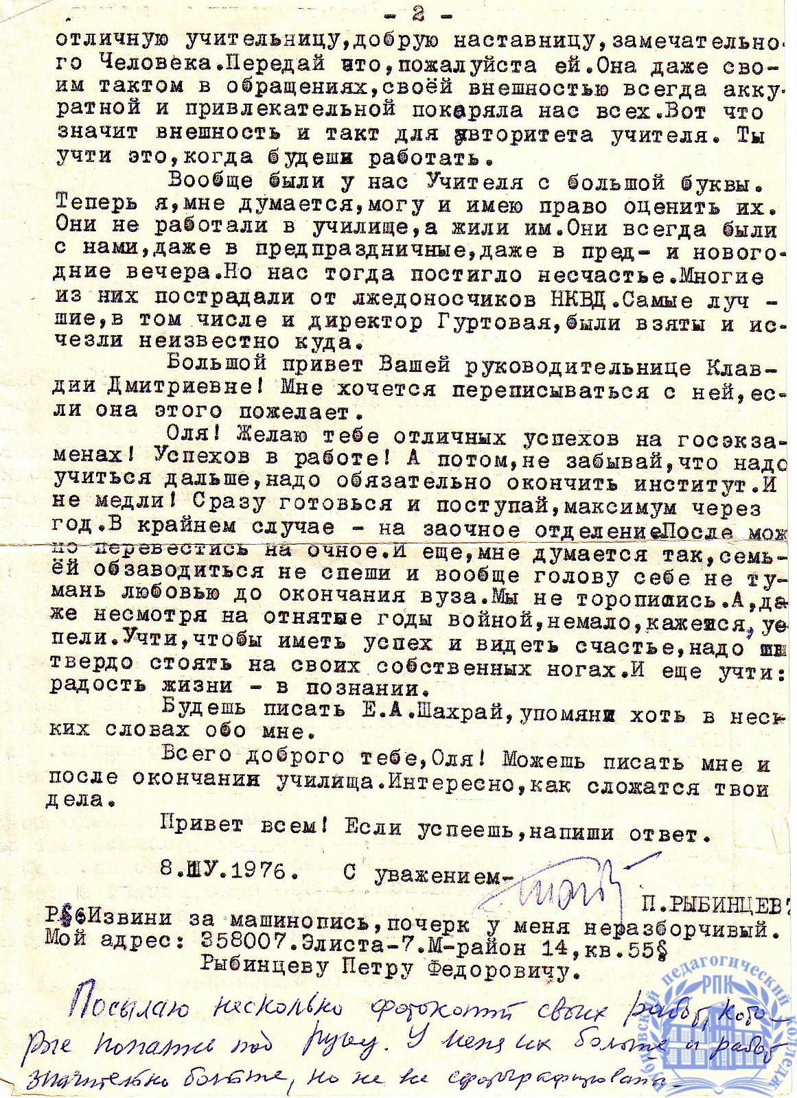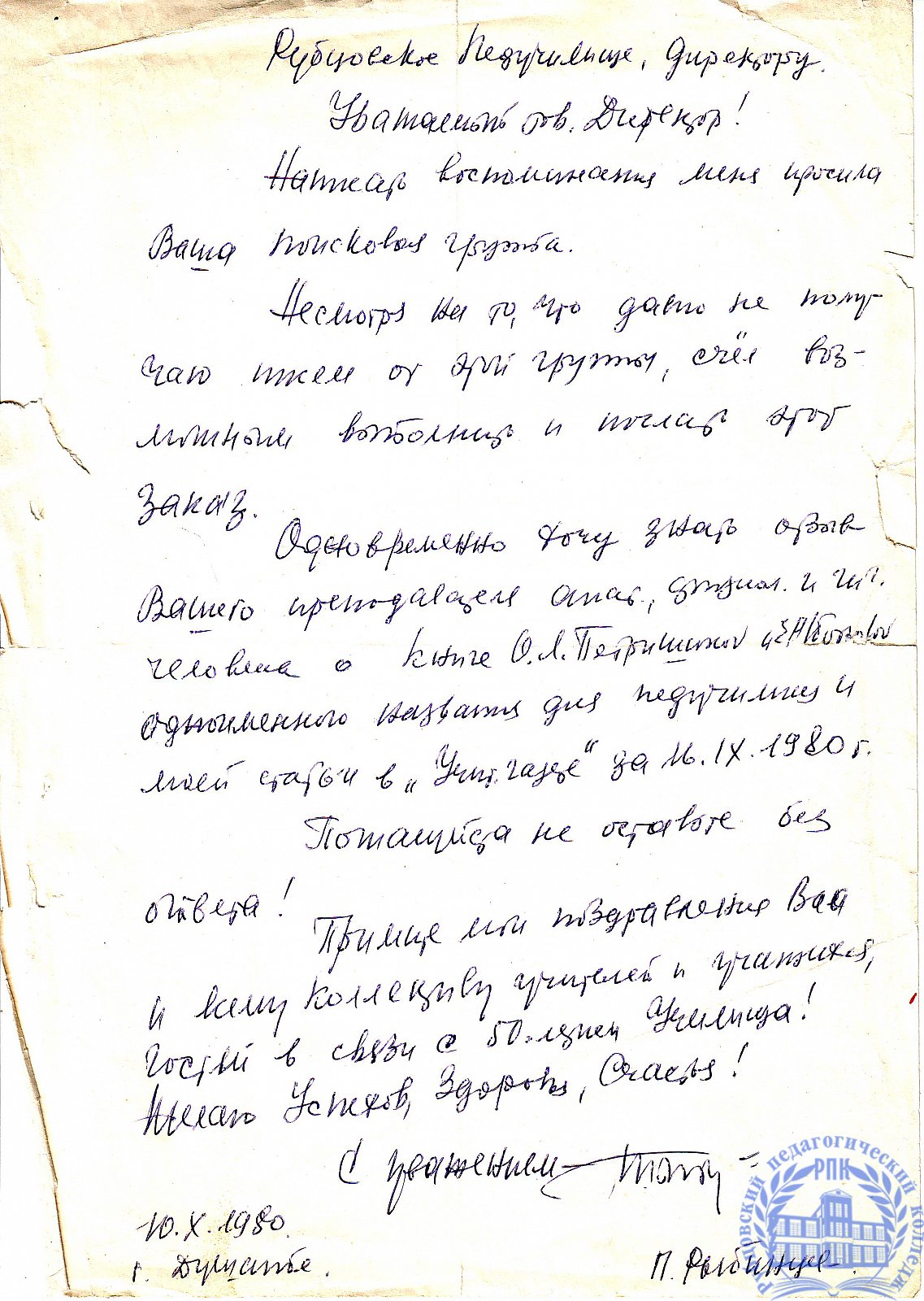 Письма выпускников XX в.в.