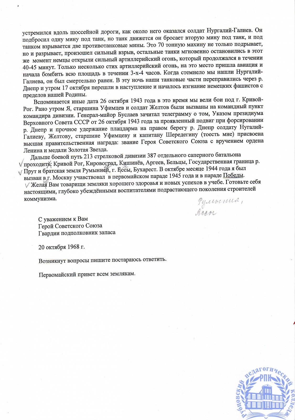 Письма выпускников XX в.в.