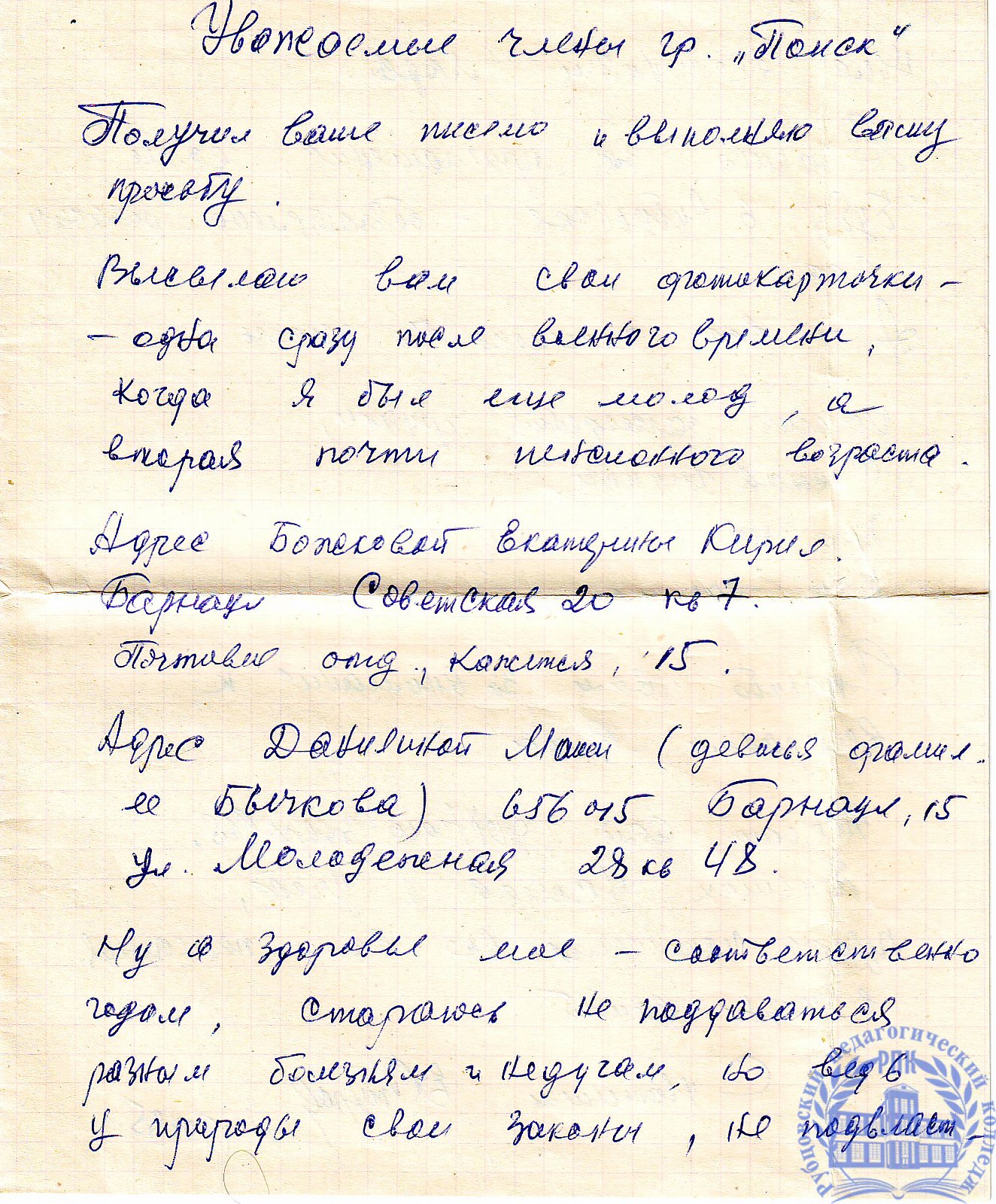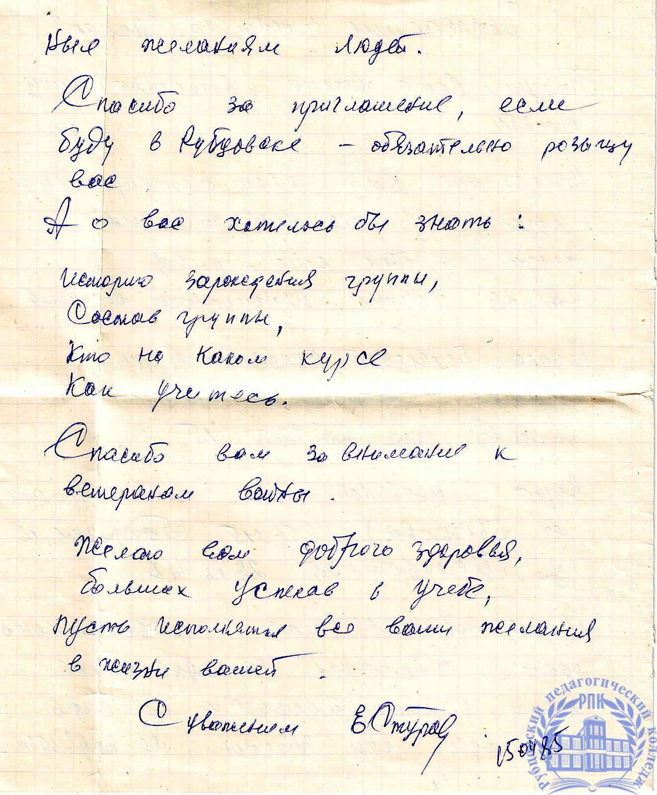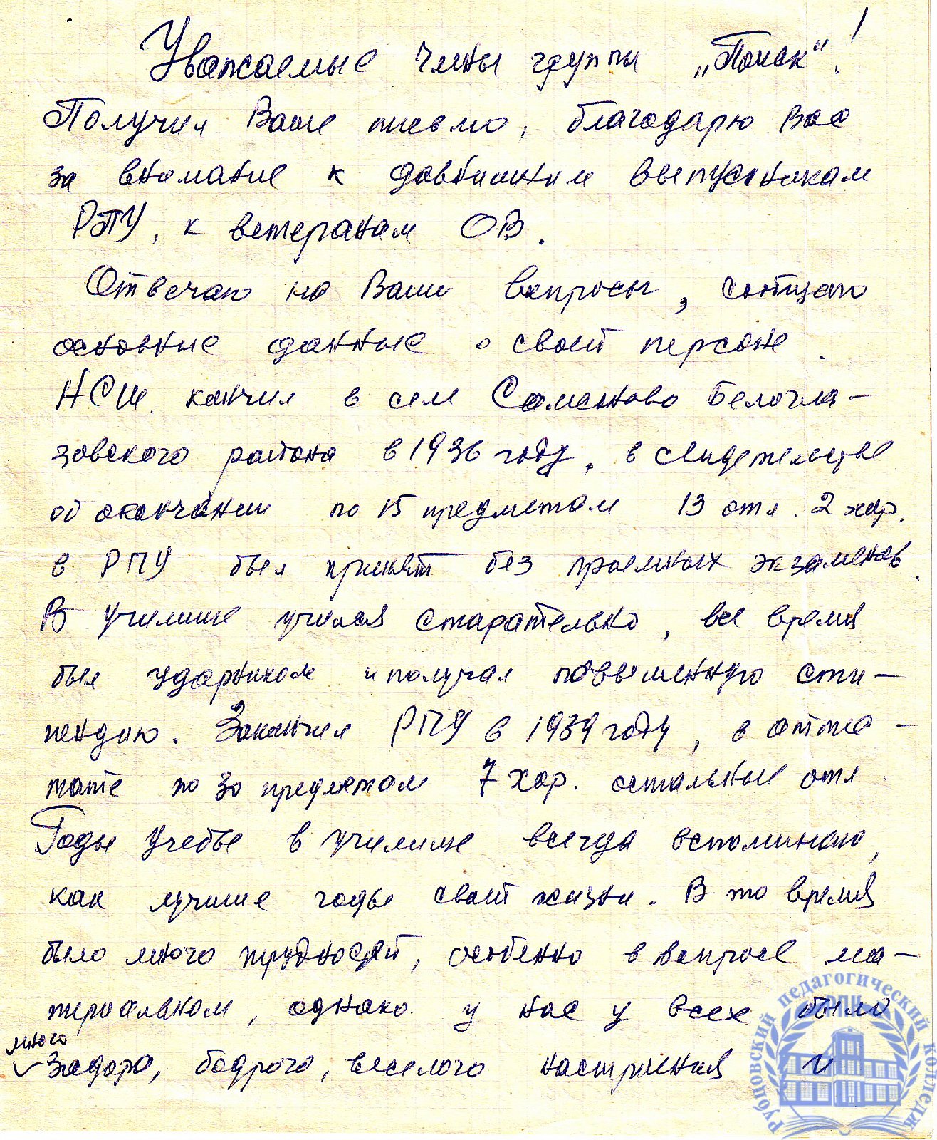 Письма выпускников XX в.в.